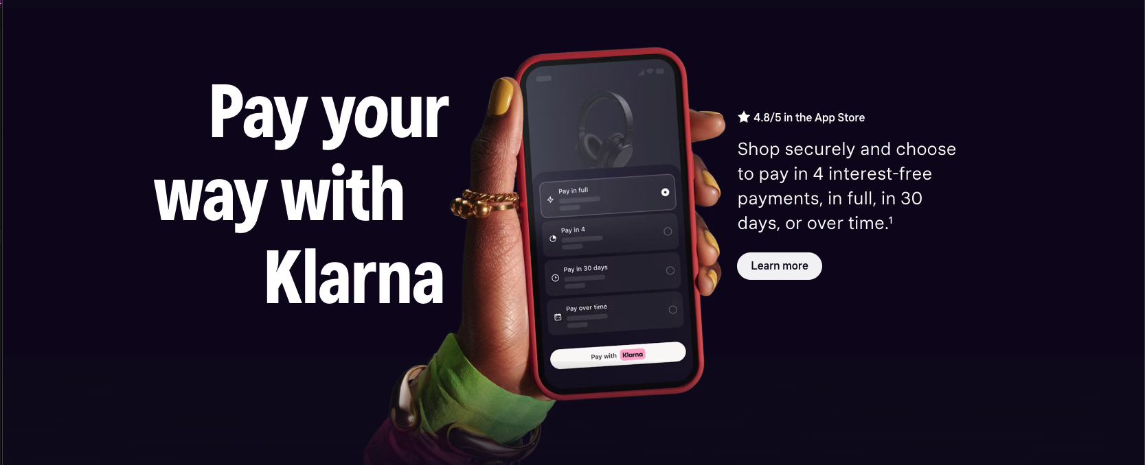 Shop now, pay with Klarna.